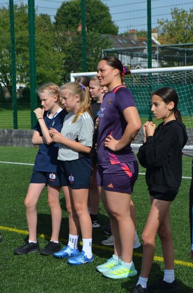 The visit came just one day before the Black Ferns convincingly beat Ireland 40–0 in their Women’s Rugby World Cup pool match, yet they gave their all at Patcham, leaving a lasting impression on every child who took part. The school is determined to build on this experience to inspire even more young people, particularly girls, to discover the joy of rugby.